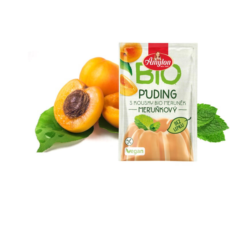Organic creamy gluten-free apricot pudding, suitable for vegetarians