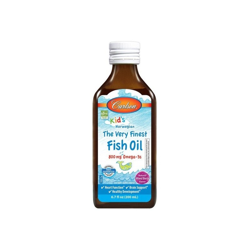 Kid's The Very Finest Fish Oil 800mg Natural Mixed Berry 200ml Carlson Labs provides 800 mg of omega-3s per ½ teaspoon to support healthy development, heart and brain function, vision, and immune health. Sustainably sourced from high-quality, deep, cold-water fish, this award-winning liquid supplement is available in delicious natural flavours like lemon, orange, mixed berry, and peach. Each batch is lab-tested to ensure freshness, potency, and purity, making it a trusted choice for growing children.