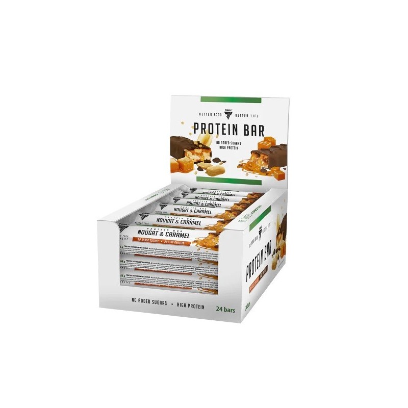 Baton Proteinowy Nugat i Karmel 24 x 46g Trec Nutrition Baton Proteinowy Nugat i Karmel 24 x 46g Trec Nutrition jest doskonałym źródłem białka, dzięki czemu jest idealny dla sportowców i każdego, kto chce uzupełnić swoją dietę o wysokiej jakości białko. Połączenie smaków nugatowego i karmelowego zapewnia rozkoszną ucztę bez poczucia winy związanego z konwencjonalnymi cukierkami.