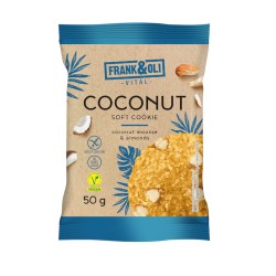 Miękkie ciasteczko Kokosowe Miąższ kokosowy i Migdał BEZGLUTENOWE 50g Frank & Oli