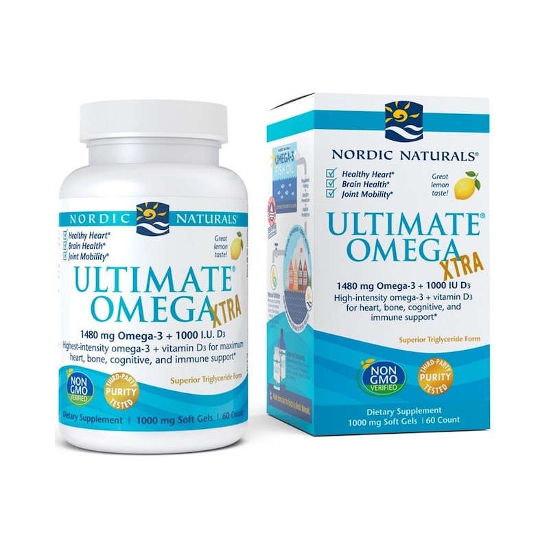 Ultimate Omega Xtra 1480mg Smak Cytrynowy 60 kapsułek Nordic Naturals to suplement omega-3 o wysokiej mocy, zaprojektowany w celu wspierania wielu obszarów zdrowia, w tym układu sercowo-naczyniowego, funkcji poznawczych i zdrowia stawów, oferując jednocześnie dodatkowe korzyści witaminy D3.