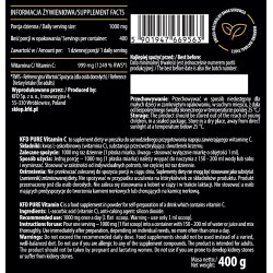 Suplement diety Witamina C (Proszek) 400g KFD to produkt z linii PURE - nie zawiera aromatów i słodzików.