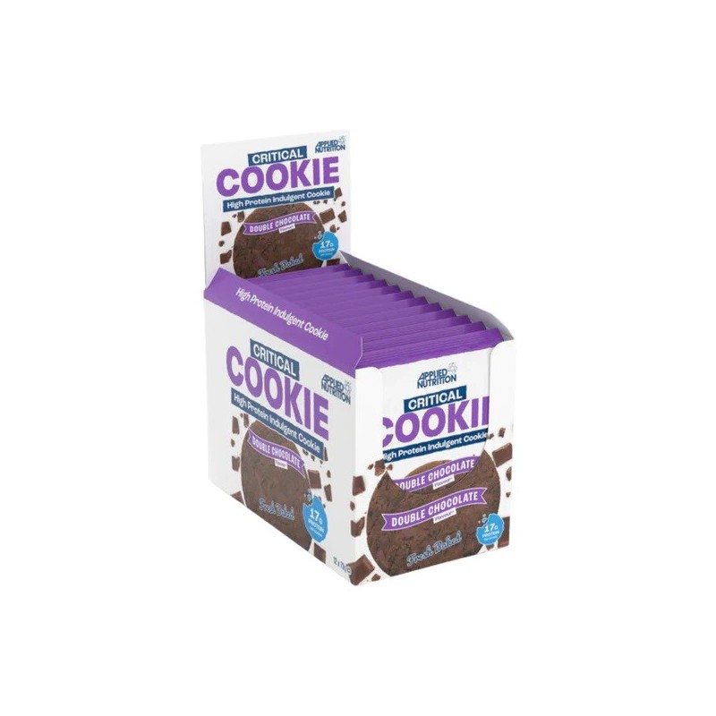 Critical Cookie, Double Chocolate 12x73g Applied Nutrition to świeżo upieczona, wysokobiałkowa przekąska przeznaczona do wygodnego spożycia, zarówno po treningu, jak i w podróży. Każde ciasteczko o wadze 73 g dostarcza 17 g białka, co czyni je odpowiednią opcją dla tych, którzy chcą zwiększyć spożycie białka