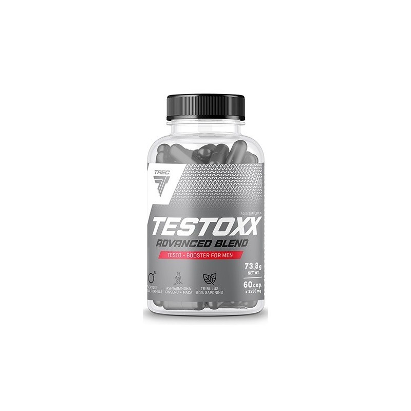 Testoxx 1230mg 60 caps Trec Nutrition is a dietary supplement designed for men seeking to support their natural testosterone levels. Its formula includes carefully selected herbal extracts such as Tribulus terrestris, fenugreek, maca root, ashwagandha, and Korean ginseng, combined with D-aspartic acid and zinc. These ingredients work synergistically to support hormonal balance, enhance physical performance, and boost libido. Testoxx is recommended for men engaged in intense training and those over 35 years old, as testosterone levels naturally decline with age.Â